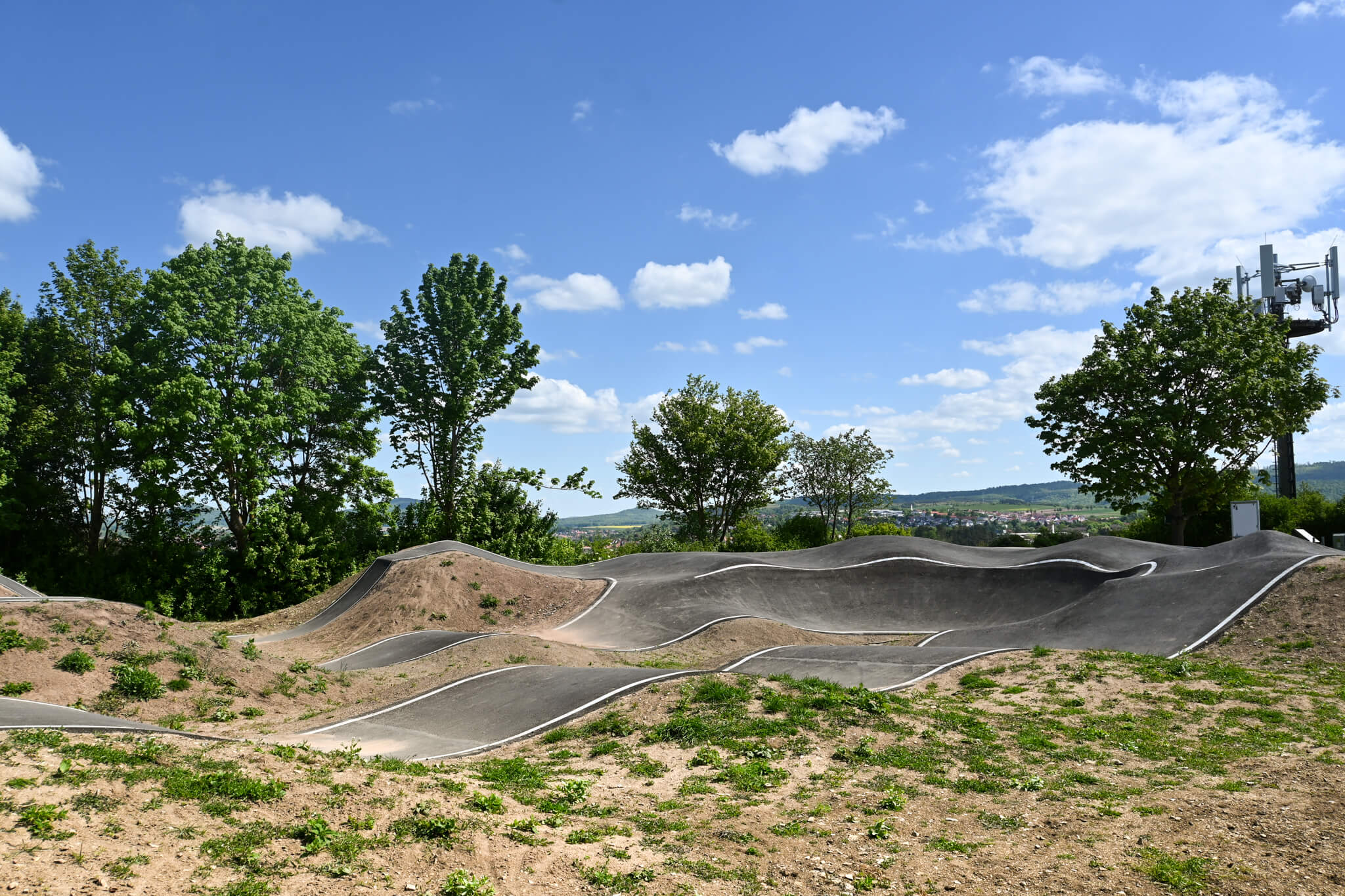 Auf einer Gesamtfläche von rund 4.200 Quadratmetern wurde durch ein Planungsbüro die moderne Pumptrack-Anlage konzipiert, die sowohl ambitionierte Mountainbiker als auch Hobbysportler gleichermaßen ansprechicht und darüber hinaus auch eine Strecke für Kinder und Anfänger bietet.