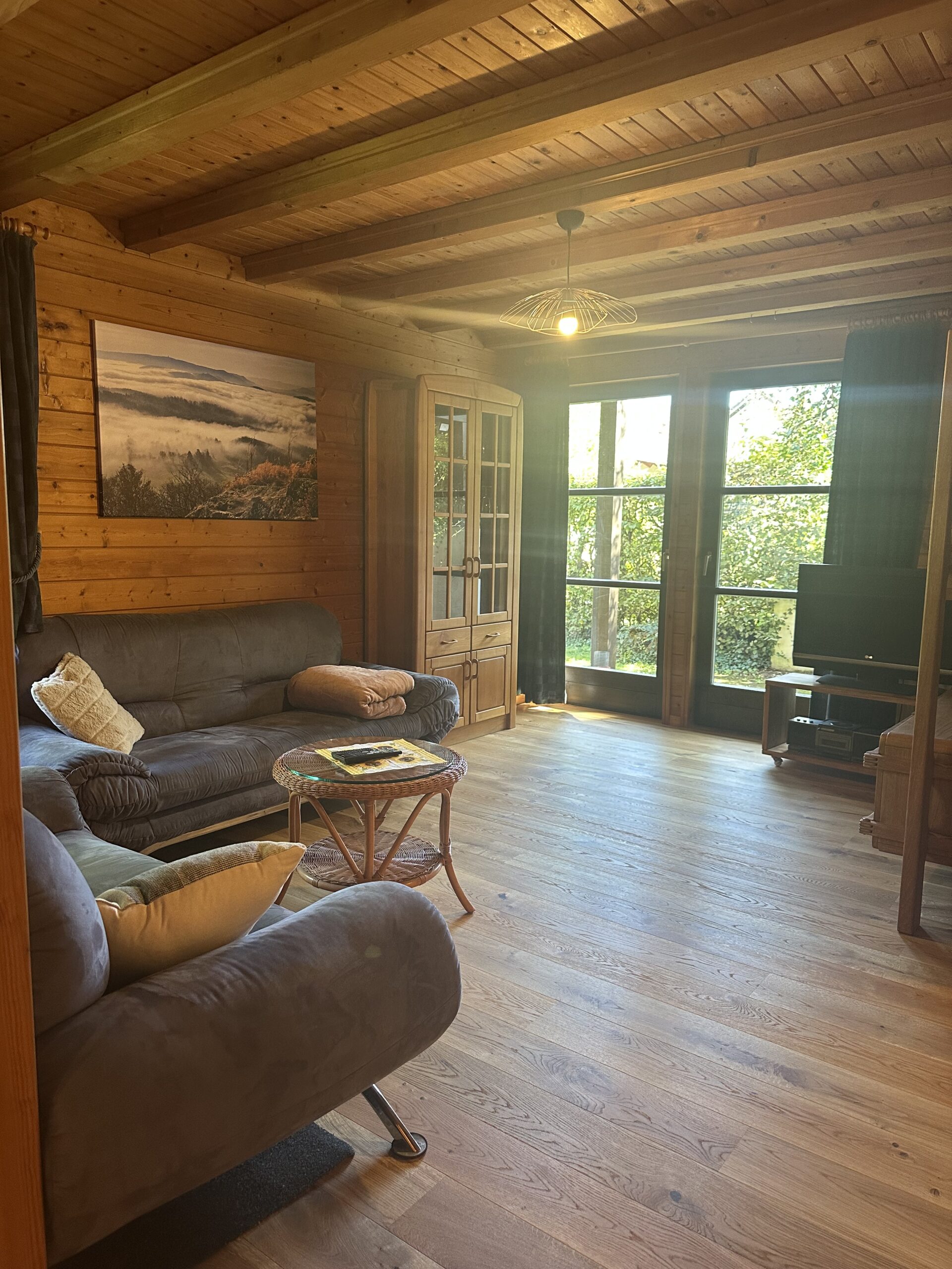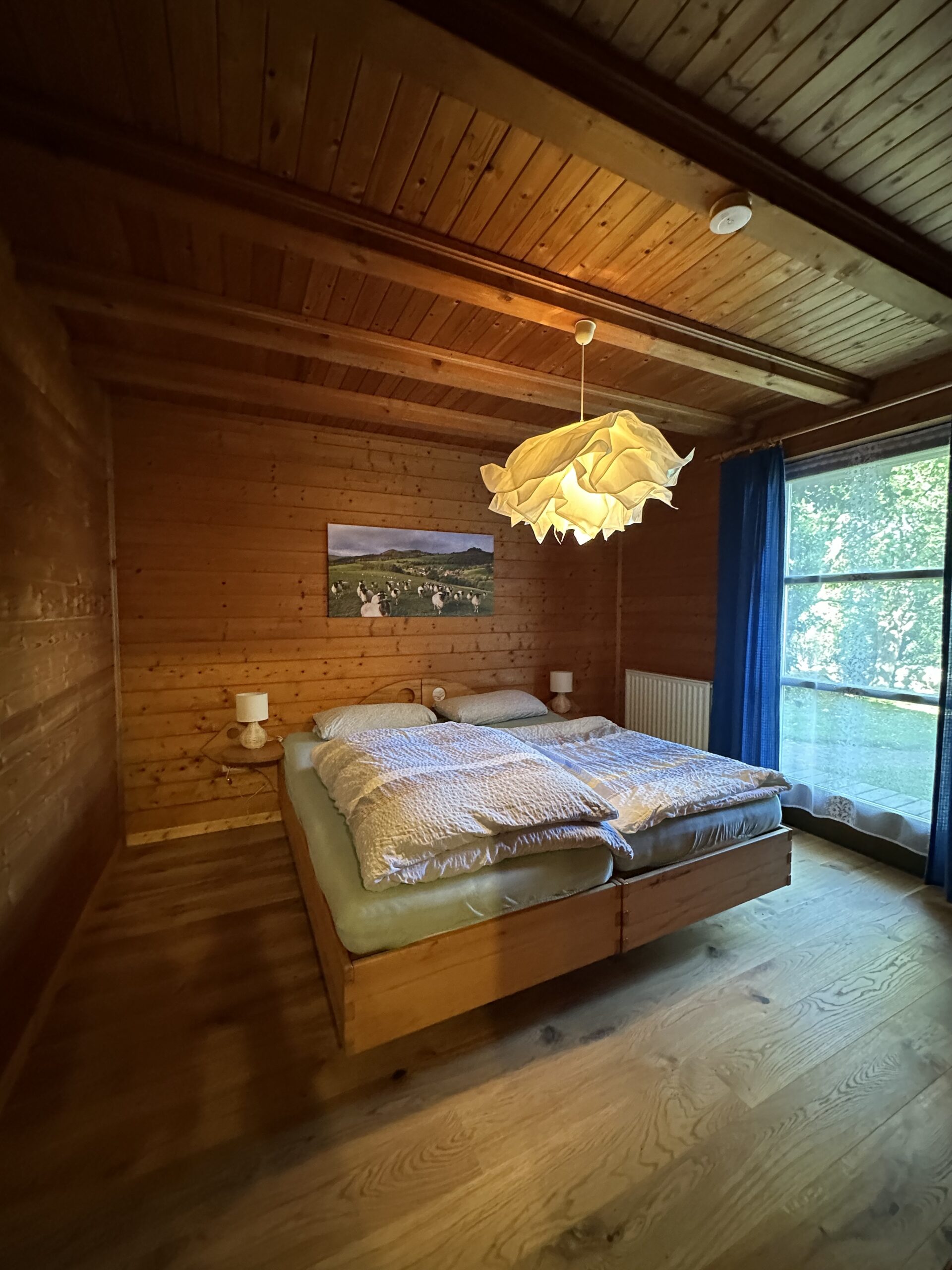 68 m² mit Windfang, gemütlichem Wohn-Essbereich, Küche, Bad m.Dusche, Schlafzimmer m.Doppelbett aus Zirbenholz mit hochwertigem Naturbettsysstem „Hüsler-Nest“ + Schlafcouch f. 2 Personen