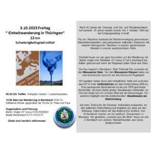 03.10.2025 Freitag „Einheitswanderung in Thüringen“ 12 km Schwierigkeitsgrad mittel