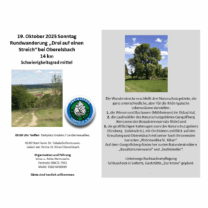 Sonntag, 19.10.2025   Rundwanderung „Drei auf einen Streich“  bei Oberelsbach
